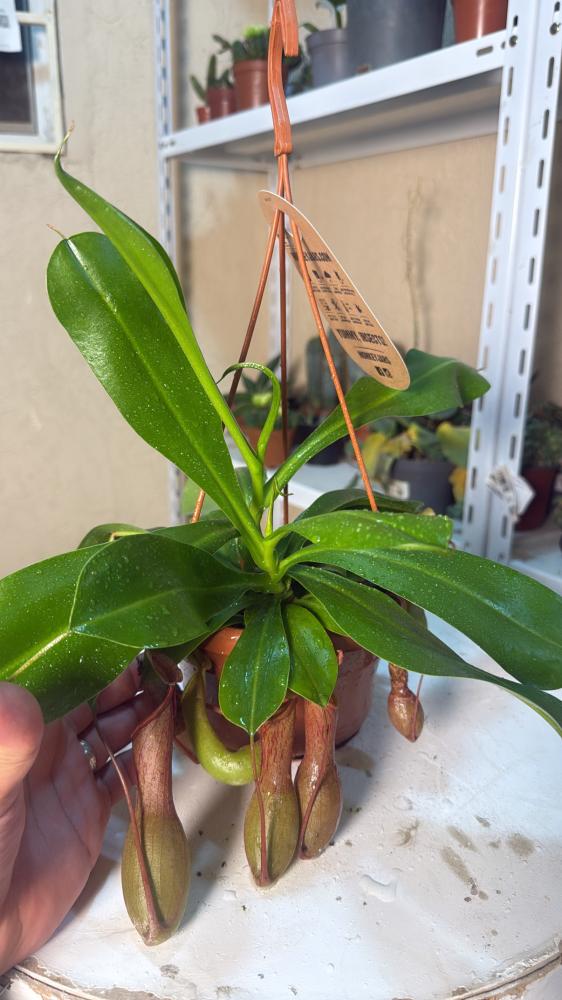 نبتة آكلة للحشرات بجرّة أنيقة تشبه الكأس المعلقة، بألوان جذابة تتدرج بين الأخضر والأحمر. تعيش في أجواء استوائية رطبة وتعتبر من أندر وأجمل أنواع النيبنتيس!