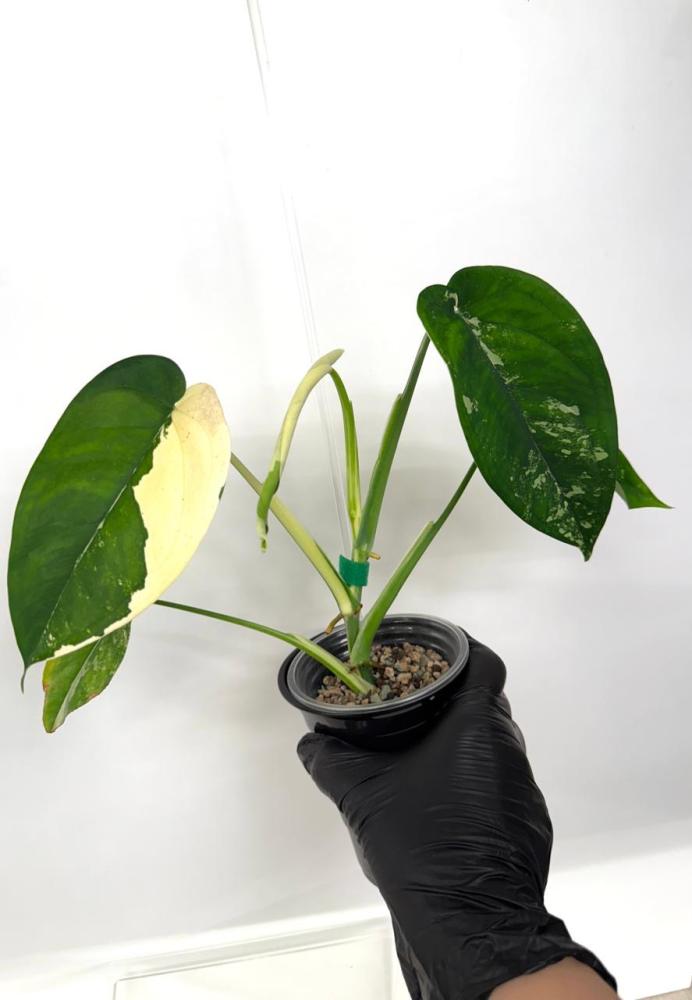 نبتة نادرة وفخمة بأوراق خضراء سميكة ولامعة، مزينة بتبرقشات كريمية ساحرة تظهر بشكل عشوائي وجذاب!