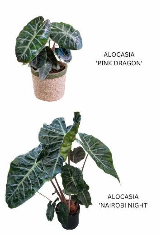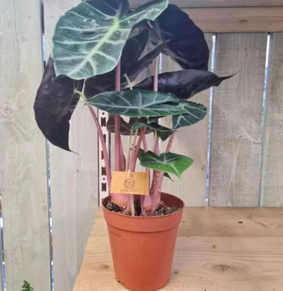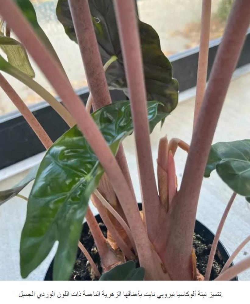 تتميز نبتة ألوكاسيا نيروبي نايت بأعناقها الزهرية الناعمة ذات اللون الوردي الجميل.