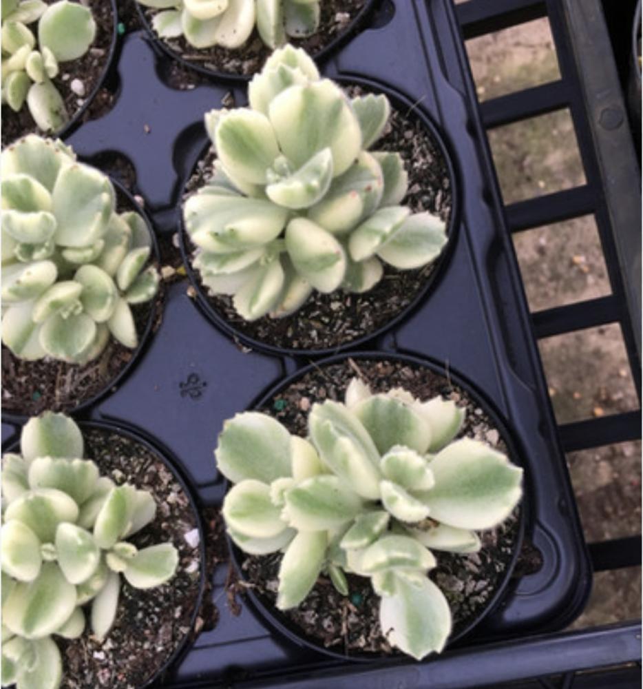 نبتة عصارية مميزة ونادرة، تُشبه أوراقها الصغيرة الكفوف الناعمة للدببة، وتُزينها أطراف حمراء جذابة. النسخة المبرقشة تضيف لمسة لونية فريدة من الأبيض والأخضر الكريمي، ما يجعلها محط أنظار في أي مجموعة نباتية.
