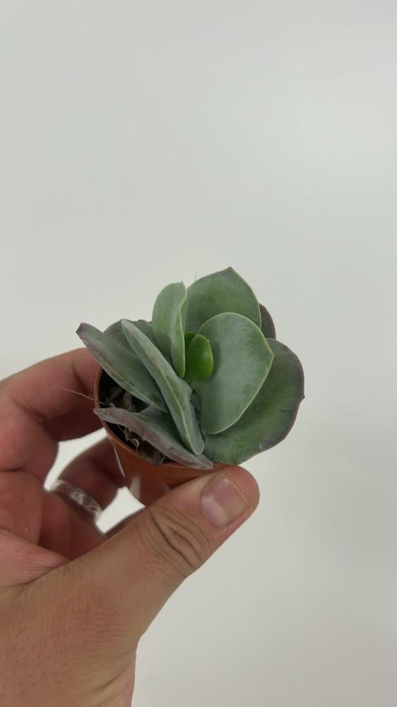 نبتة عصارية جميلة ونادرة، تتميّز بأوراق بيضاوية سميكة ناعمة الملمس، بلون أخضر زبدي جذّاب، وقد تظهر على حوافها لمسات وردية خفيفة عند تعرضها للشمس. تنمو بشكل متراص وأنيق يجعلها مثالية للأحواض الصغيرة أو الحدائق الصخرية.
