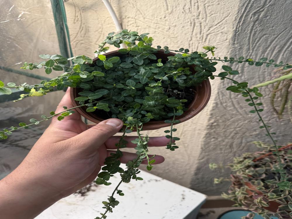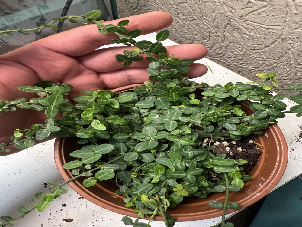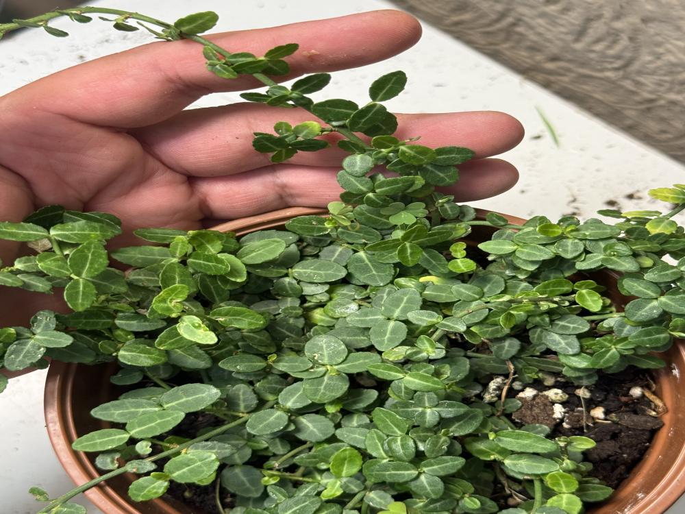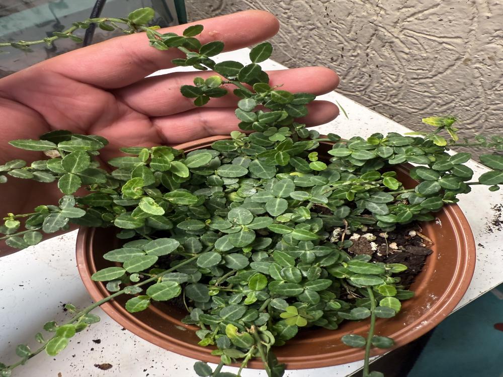 نبتة زاحفة صغيرة الحجم وأنيقة، تتميز بأوراق خضراء داكنة لامعة وصغيرة جدًا، مما يجعلها مثالية كغطاء أرضي أو للزراعة في أصص معلقة أو بين شقوق الصخور والحدائق المصغرة (Mini gardens).
