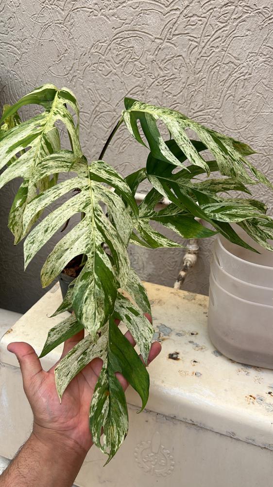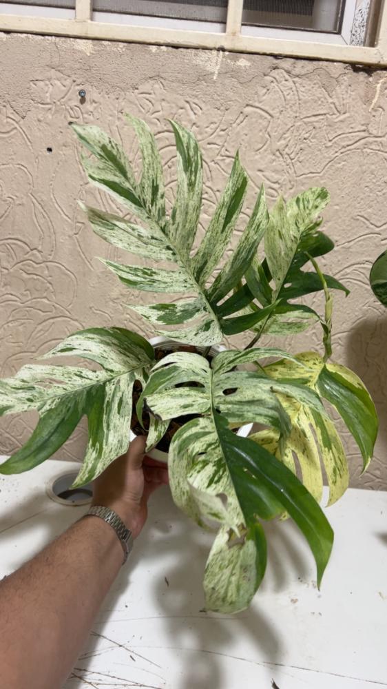 نبتة استوائية نادرة، تخطف الأنظار بتلوّن أوراقها المتماوج بين الأخضر الغامق والكريمي المائل للبياض بتوزيع رخامي فخم. مع نموها وتوفير عمود تسلق، تبدأ أوراقها بالاستطالة والانشقاق بشكل طبيعي، مما يعطيها مظهرًا ديناميكيًا راقٍ جدًا.