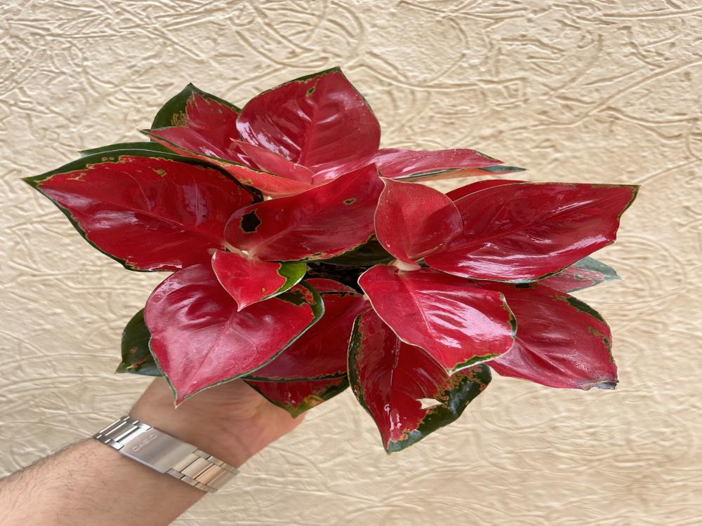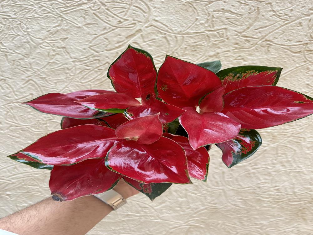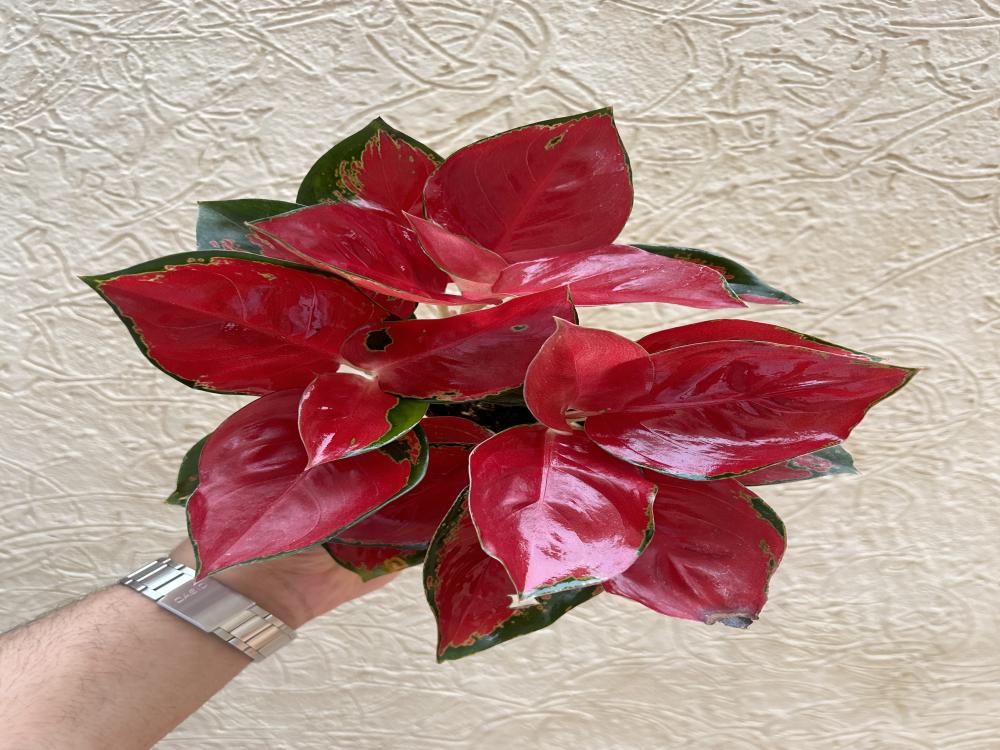 من أروع أنواع الأجلونيما وأكثرها طلباً! أوراقها الحمراء القوية تخطف الأنظار وتضيف لمسة فخمة لأي ركن في البيت أو المكتب.