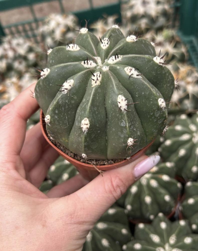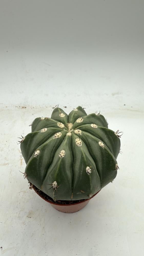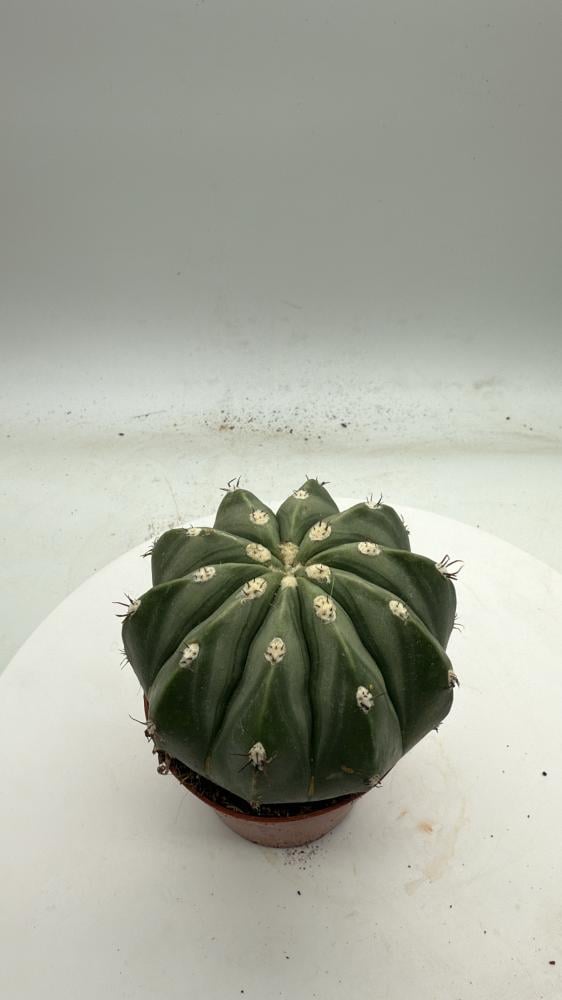 نبات صباري مميز ونادر، يتميز بشكله الكروي وأضلعه الواضحة، بدون أشواك تقريبًا مما يعطيه مظهر أنيق وناعم. عند البلوغ يُكوّن قبعة صوفية حمراء (cephalium) تخرج منها الأزهار الوردية الصغيرة. خيار مثالي لهواة الصباريات النادرة ولمسة ديكور طبيعية فريدة.