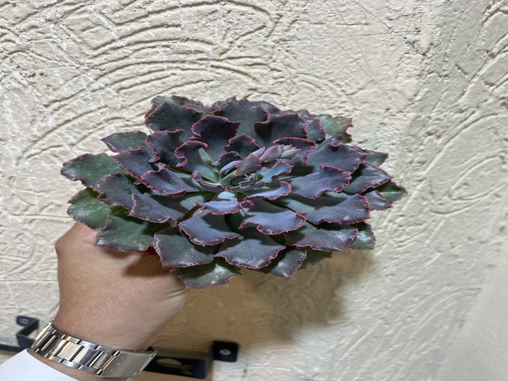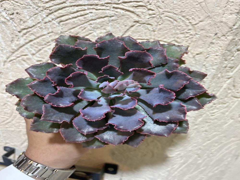نبتة عصارية نادرة ولافتة، تُعرف بأوراقها المرتبة على شكل وردة أنيقة بلون بنفسجي غني يميل أحيانًا إلى الوردي أو الفضي حسب الإضاءة. أوراقها عريضة ومخمليّة بعض الشيء، وتعطي انطباعًا بحركة دائرية راقصة، وكأن كل ورقة تلتف حول الأخرى في انسجام فني.