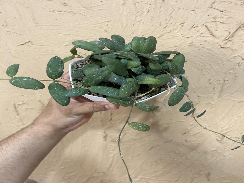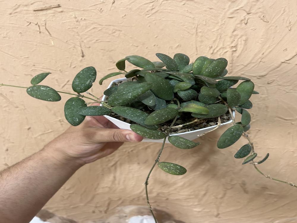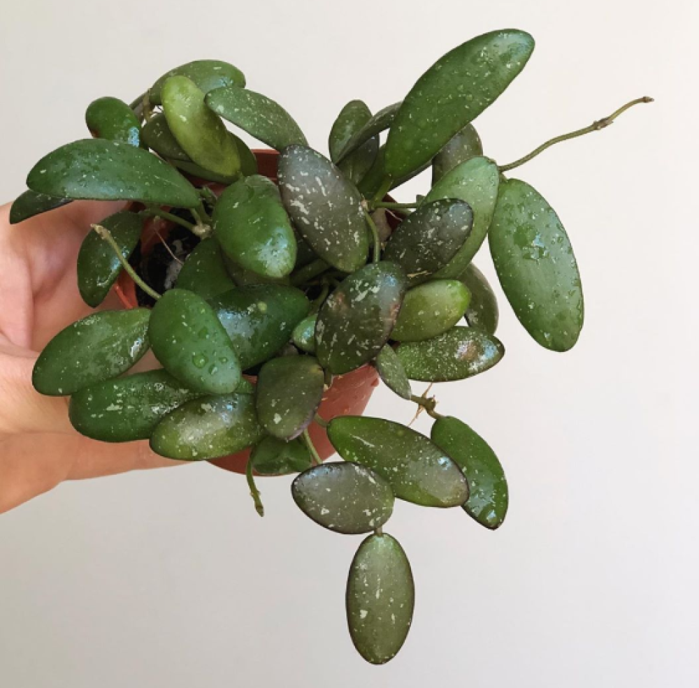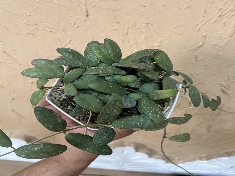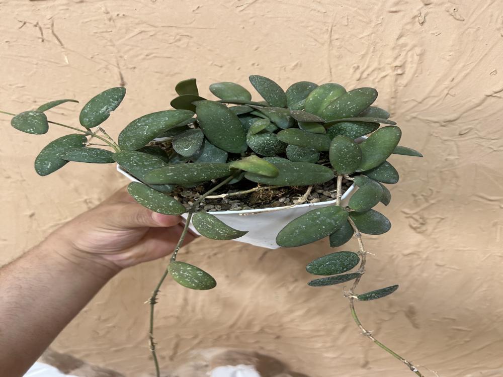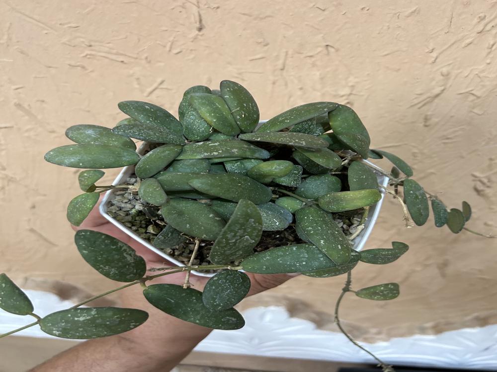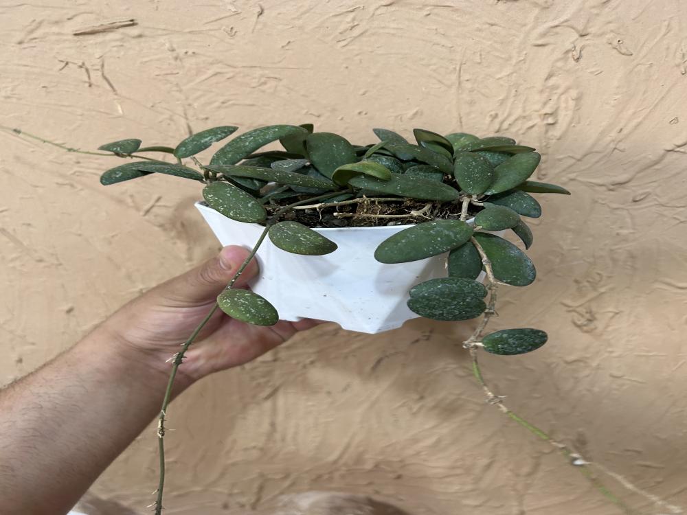 من الهويا النادرة والغامضة التي لم تُصنف رسميًا بعد، وتُعرف بأوراقها البيضاوية العريضة ذات اللون الأخضر الغامق، غالبًا ما تظهر عليها بقع فضية خفيفة حسب الإضاءة. ملمس الأوراق شمعي وقوي، وشكل النمو جميل سواء كتسلق أو تدلي.