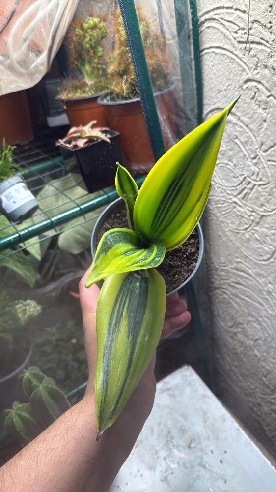 واحدة من أجمل أنواع السانسيفيريا على الإطلاق! تتميز بأوراقها العريضة ذات اللون الذهبي الساطع في الوسط محاطة بحواف خضراء داكنة، مما يعطي إيحاءً بلهب متوهج وسط أوراق أنيقة ومتماسكة. شكلها المعماري الجذاب يجعلها مثالية للمكاتب والمنازل العصرية، كما أنها تُعد من النباتات القوية والمنقية للهواء.