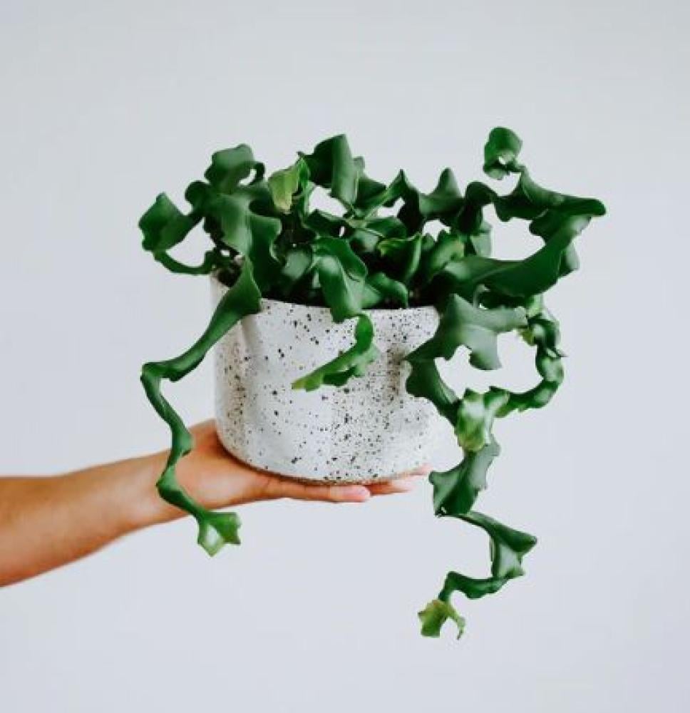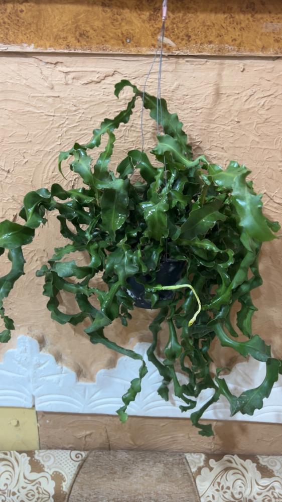صبار معلق فريد يتميز بأوراق ملتوية ومتعرجة تمنحه شكلاً فنياً غريباً وجذاباً. ومع العناية الجيدة، قد يُفاجئك بأزهار بيضاء عطرة تظهر في فترات محددة، مما يجعله قطعة ديكور طبيعية مذهلة للنوافذ أو الزوايا المضيئة.