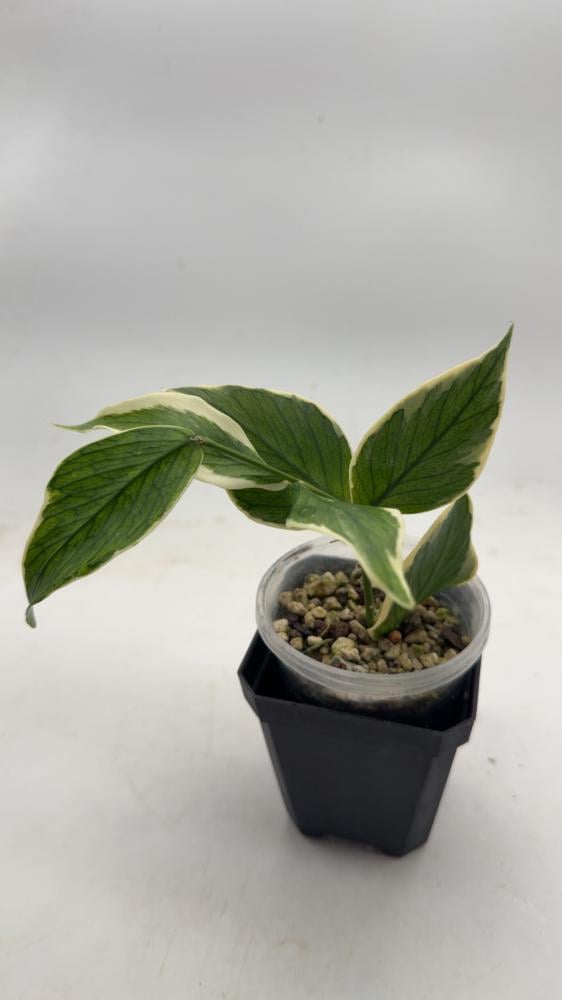 الورقة خضراء فاتحة وناعمة، مع برقشة بيضاء مميزة مما يعطيها ندرة