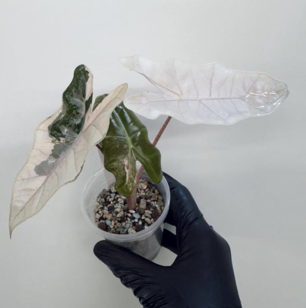 ألوكاسيا سانديريانا الوردي المتنوع من أندر أنواع الألوكاسيا، تتميّز بأوراقها السيفية اللامعة ذات العروق الوردية الساحرة وتمازج الأخضر الداكن مع الأبيض والوردي بتصميم طبيعي يلفت الأنظار.