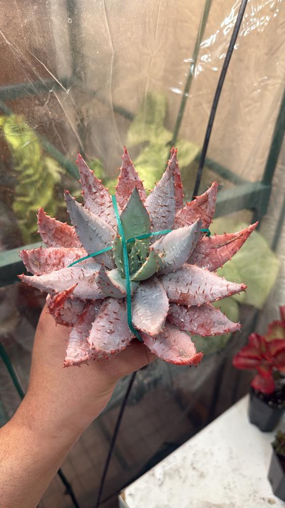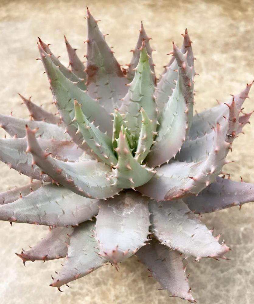 استكشف سحر الصحراء الجنوب أفريقية مع نبتة Aloe peglerae النادرة. تُعرف بلونها الرمادي المائل إلى الأزرق وبترتيب أوراقها القوسي الملفوف على شكل وردة، مما يجعلها واحدة من أكثر أنواع الألو جمالًا وتفرّدًا.