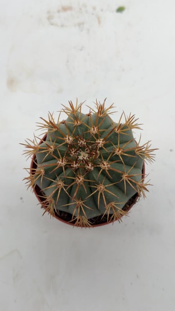- الشكل: صبار كروي إلى أسطواني، أخضر غامق مع أضلاع واضحة وأشواك قوية.