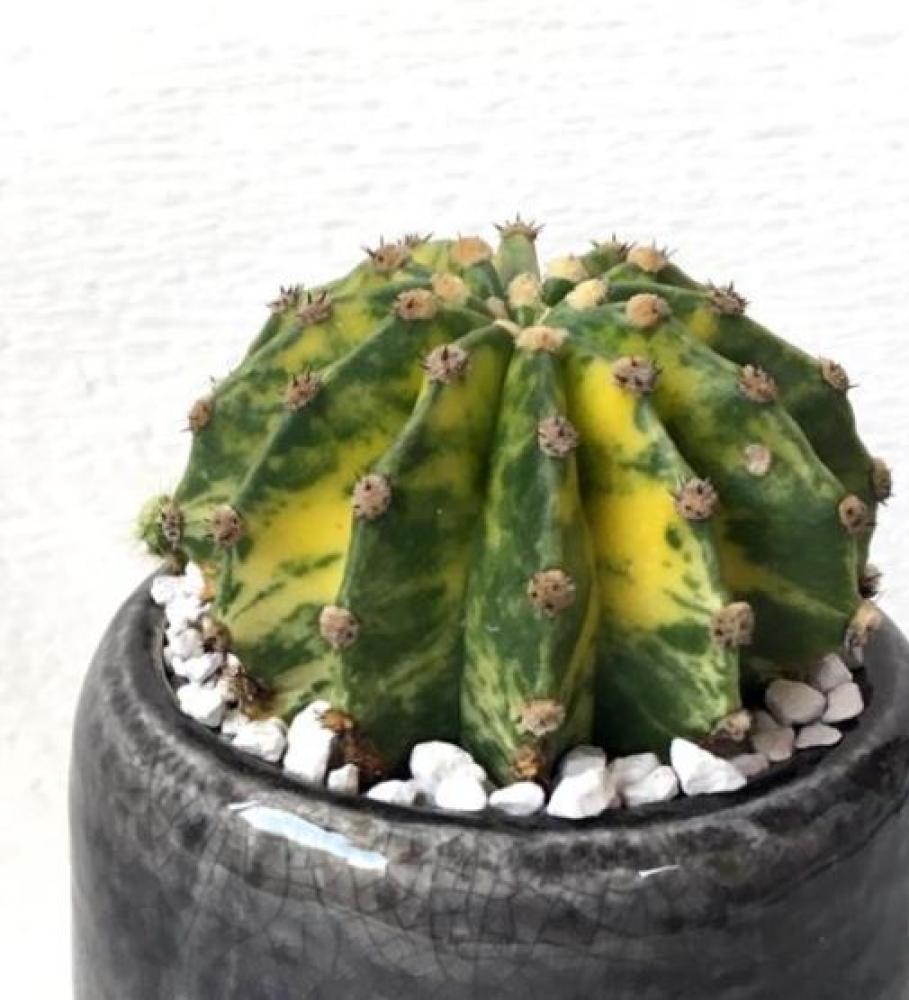 نبتة صبارية نادرة تجمع بين صلابة الصبار وجمال التباين اللوني، حيث تتميز بجسم كروي أخضر مع نقوش مميزة بتدرجات الأبيض أو الأصفر تظهر على جوانبها. هذه التباينات تضفي عليها مظهرًا فنيًا فريدًا يُذكركم بلوحات الطبيعة الصحراوية، مما يجعلها قطعة ديكور جذابة في أي مكان.