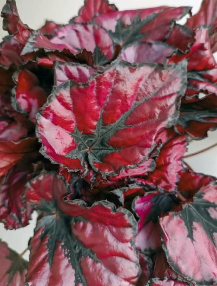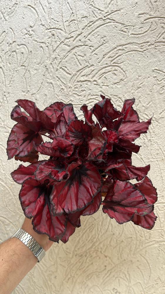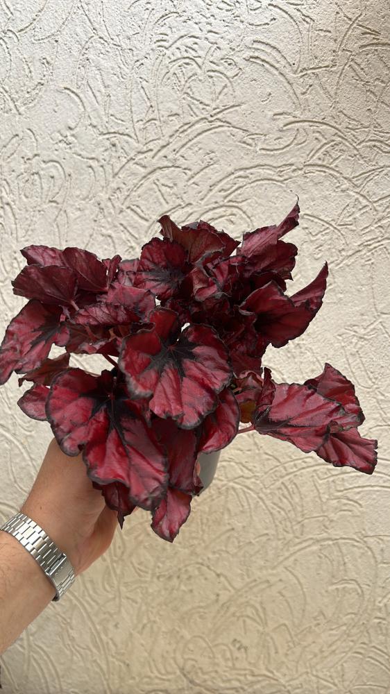Begonia Red Kiss L عبارة عن بيجونيا ريكس لها أوراق حمراء جميلة غير متكافئة وبقع مركزية سوداء أو بنية. نوصي بزراعته في الداخل مع الضوء وترك الركيزة تجف بين الري لتجنب تشبع الوعاء بالمياه.