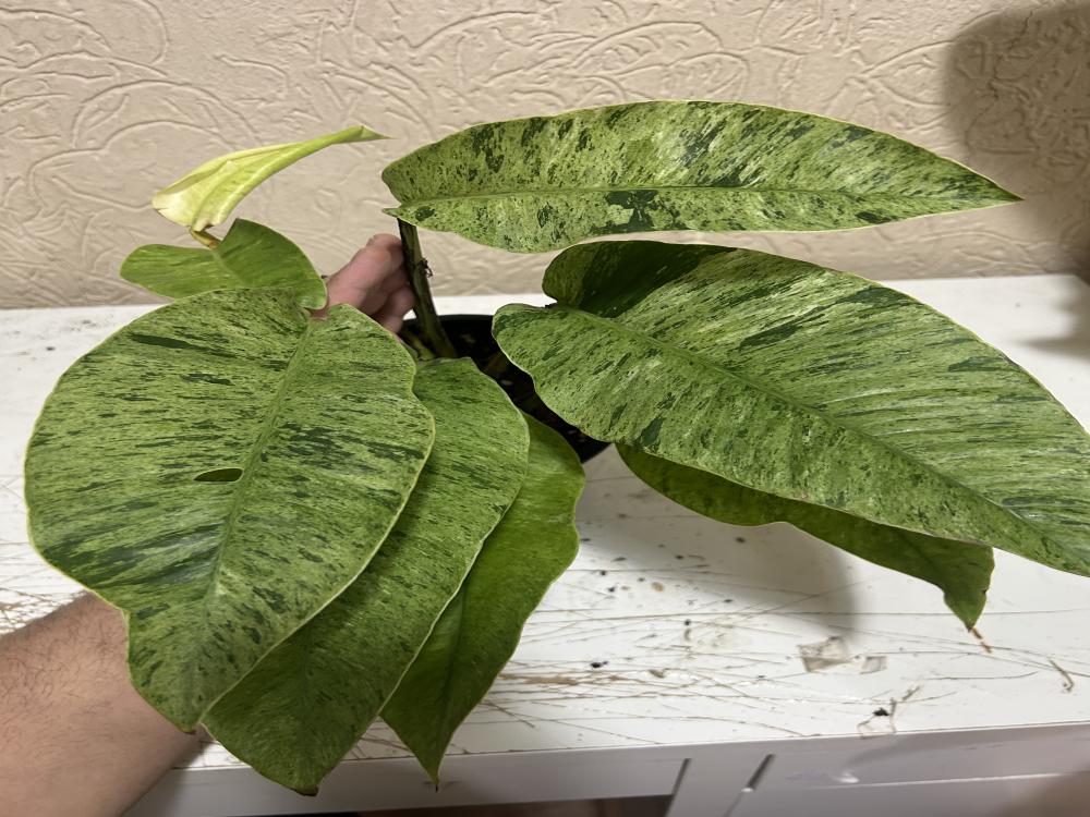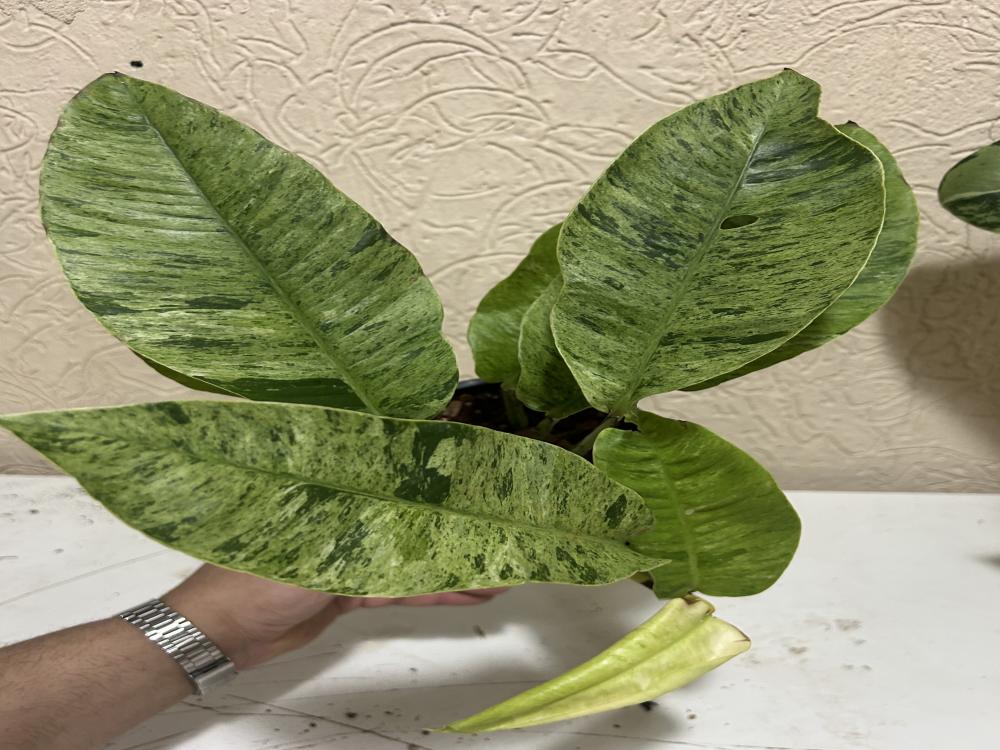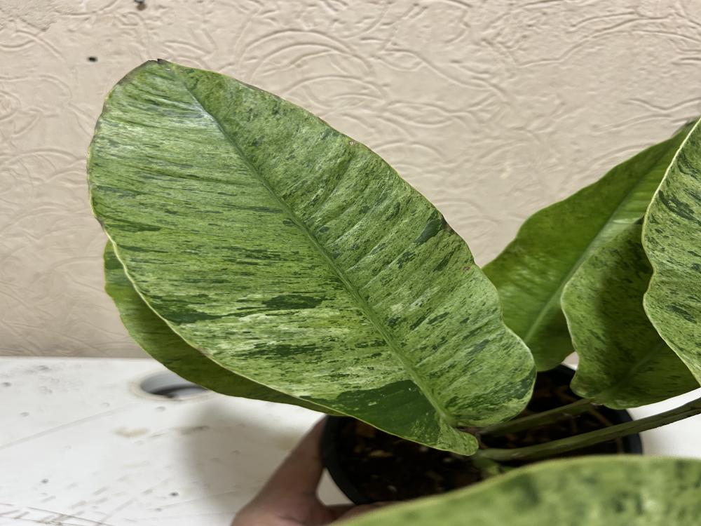 نبتة نادرة واستثنائية بحضور ملكي، تتميّز بأوراق ضخمة وفخمة مغطاة بتلوّن رخامي فاخر من الأخضر والكريمي بتوزيع عشوائي يختلف من ورقة لأخرى، ما يجعل كل نبتة قطعة فنية بحد ذاتها. مع التقدم في النمو، تكبر الأوراق بشكل ملحوظ وتتحول إلى شكل منحوت وفخم.