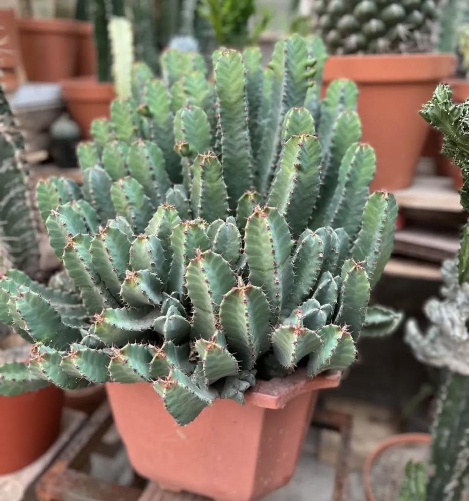 نبتة نادرة موطنها جبال الأطلس في المغرب، تتميز بأعمدتها الخضراء المزرقّة وشكلها المعماري المميز. خيار مثالي لهواة جمع النباتات العصارية النادرة وعشاق الديكور الطبيعي العصري