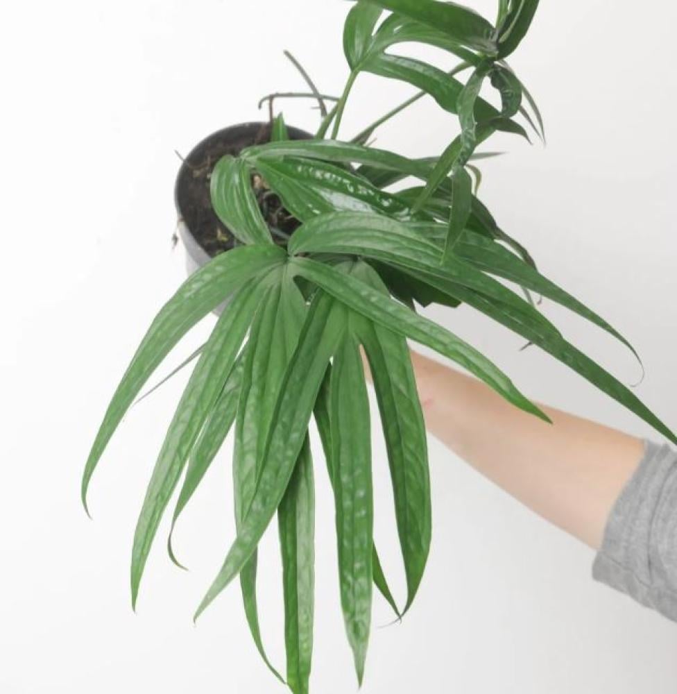 نبتة نادرة واستوائية مميزة تنتمي لعائلة الأرويد، تتميز بأوراق سهمية طويلة ذات لون أخضر غامق ولمسة مخملية ناعمة. ومع تقدم النمو، تبدأ الأوراق بتكوين شقوق وانقسامات أنيقة تعطيها طابعًا استوائيًا فاخرًا ومظهر شبيه بالمونستيرا أو الأميدريوم ميديم.