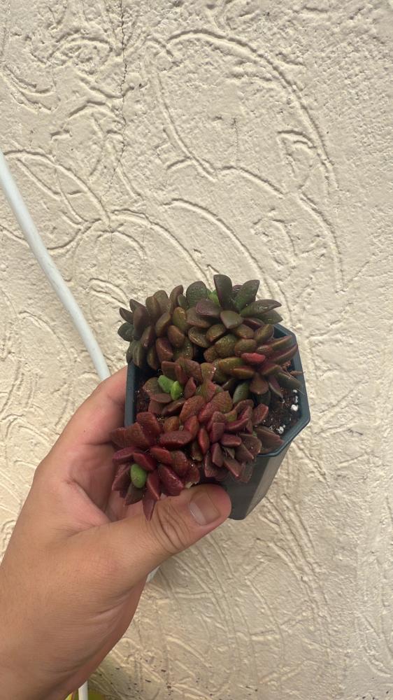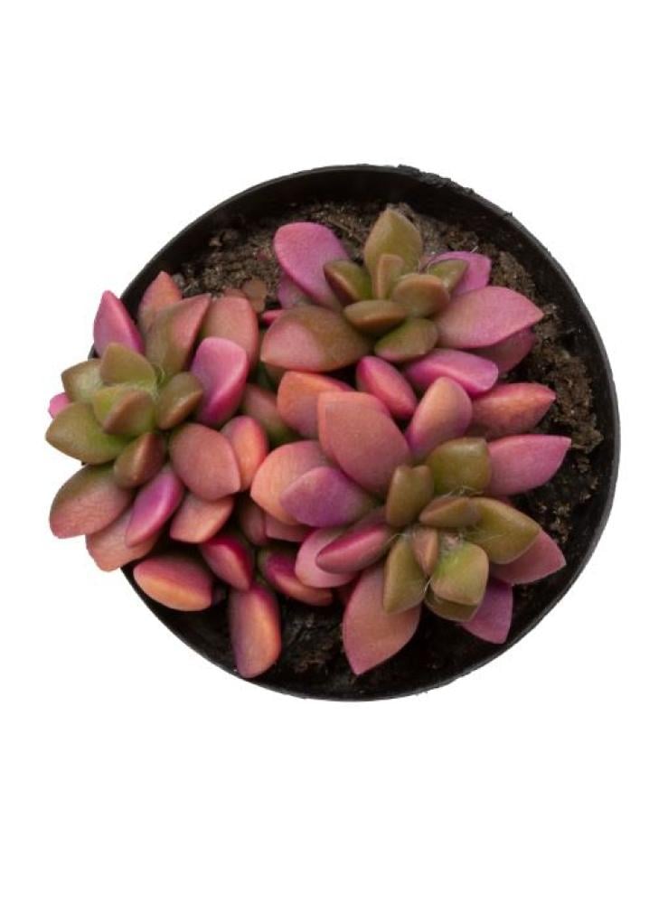 نبتة عصارية صغيرة الحجم وساحرة، تمتاز بأوراق بيضاوية كثيفة تنمو على شكل وردة مدمجة، وتأتي بتدرجات لونية جميلة بين الأخضر، الوردي، والبنفسجي حسب الإضاءة والظروف. شكلها المتراص يجعلها مثالية للتيراريوم، التزيين بالأحواض الزجاجية، أو الأصص الصغيرة.