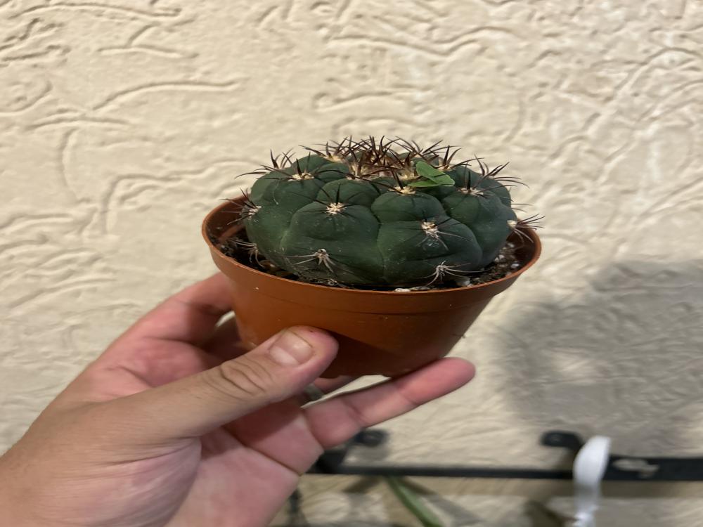 صبار كروي نادر يتميز بلونه الأخضر المائل للرمادي وأشواكه القصيرة المائلة للبياض، ويزهر بأزهار جميلة بألوان زاهية في مواسم الدفء. شكله المدمج ولمسته الجمالية يجعله مثالياً لتزيين الرفوف أو الحدائق الصخرية الصغيرة.