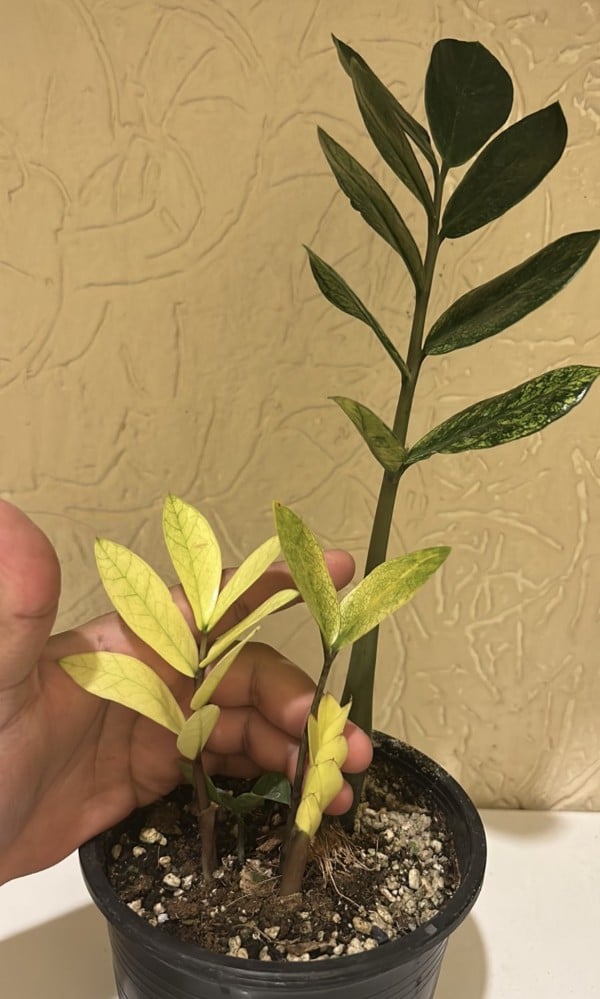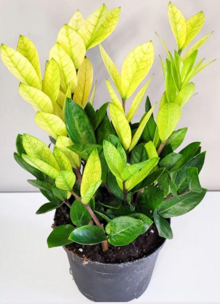 تحتوي Zamioculcas zamiifolia على أوراق صغيرة ولكنها واسعة ، خضراء داكنة و لون متدرج بين الأصفر و الأبيض و هذا ما يميزها تموج لون طفرة جينية و تعتبر من نوادر النباتات