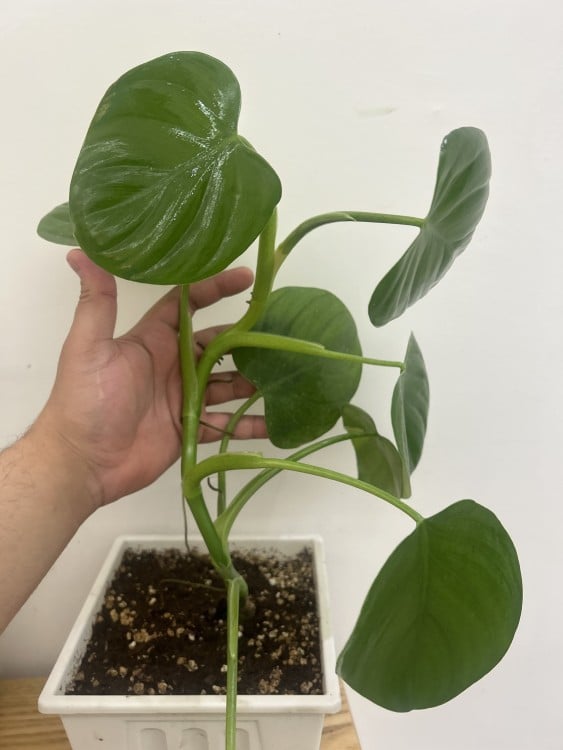 فيلوديندرون ميكروستيكتوم يتميز بأوراقه الخضراء الداكنة اللامعة ذات الشكل القلبي، ما يمنحه مظهرًا استوائيًا جذابًا يضفي لمسة طبيعية أنيقة في المنازل والمكاتب. نموه المتسلق يجعله مثاليًا على الدعامات أو كجزء من حديقة داخلية.