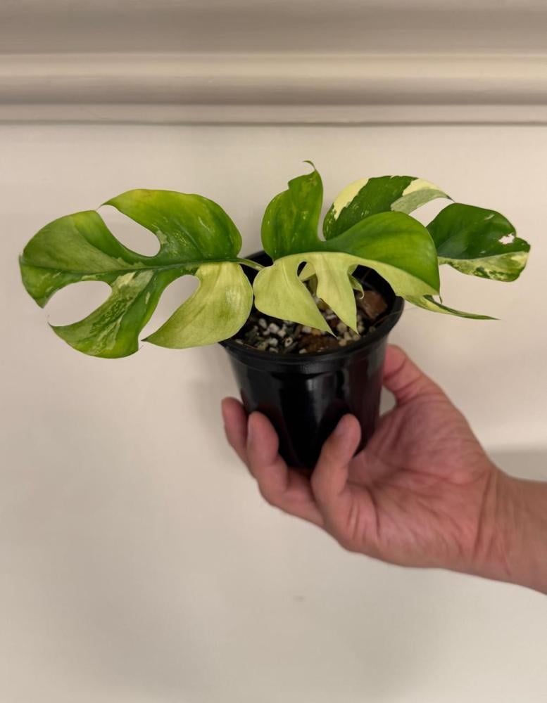 نبتة متسلقة استوائية نادرة وفاخرة، تُعرف بلقب “المونستيرا الصغيرة” (Mini Monstera)، لكن نسخة الفاريقيتد منها أكثر ندرة وجمال! تتميز بأوراق مفصصة جذابة بحجم متوسط مع تلوّن فاريقيتد ساحر باللون الأبيض أو الكريمي مقابل الأخضر العميق.