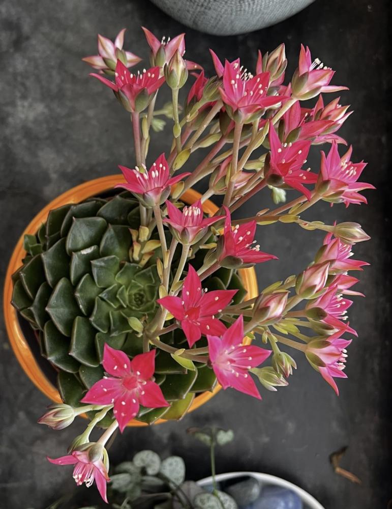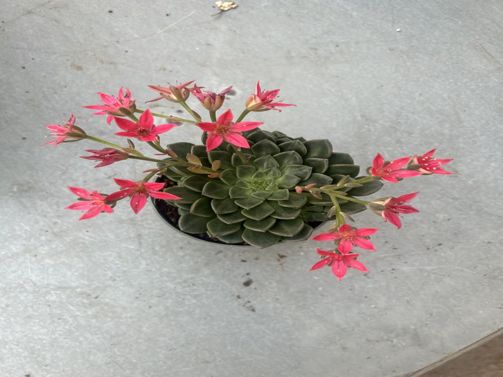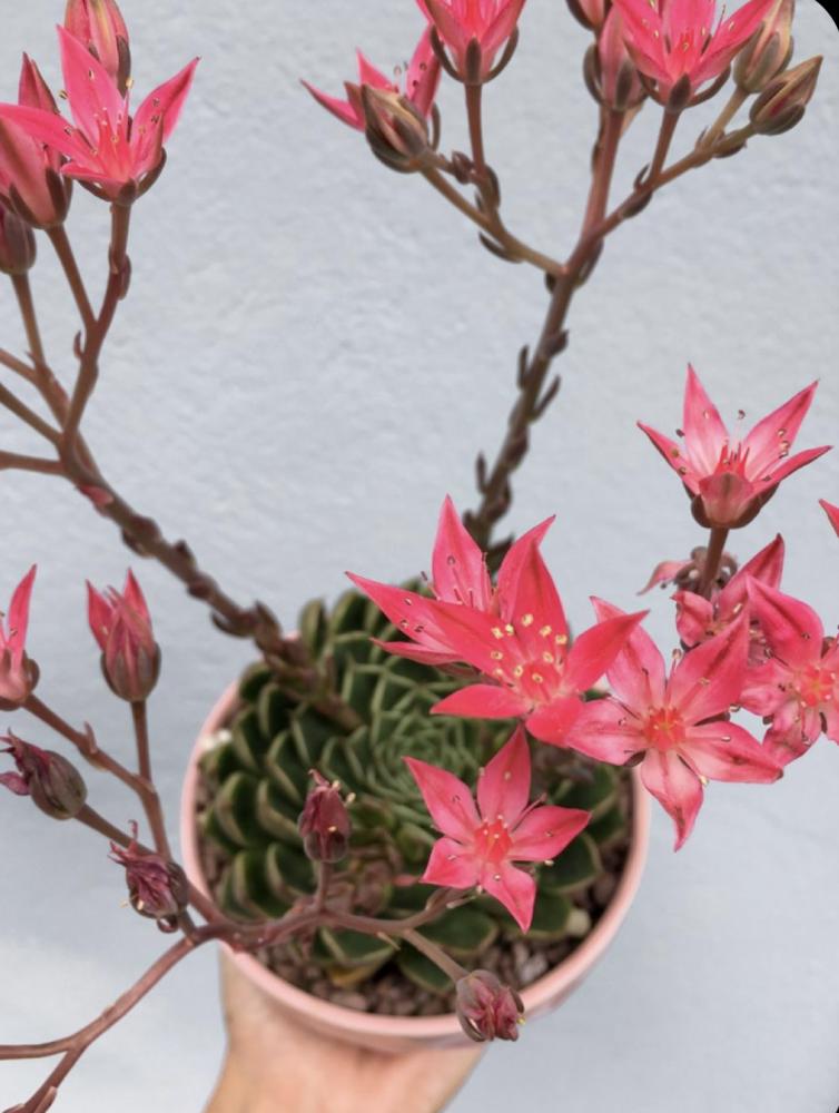 عصارية صغيرة وجذابة جدًا، تُعرف بوردة مدمجة من الأوراق الخضراء المائلة للرمادي، بحواف دقيقة تميل إلى البنفسجي أو الوردي تحت أشعة الشمس. شكلها الهندسي المثالي وحجمها الصغير يجعلها خيارًا مثاليًا للتيراريوم، التزيين، أو تنسيق الحدائق الصخرية.