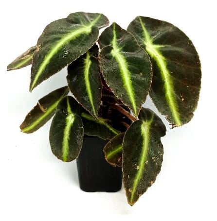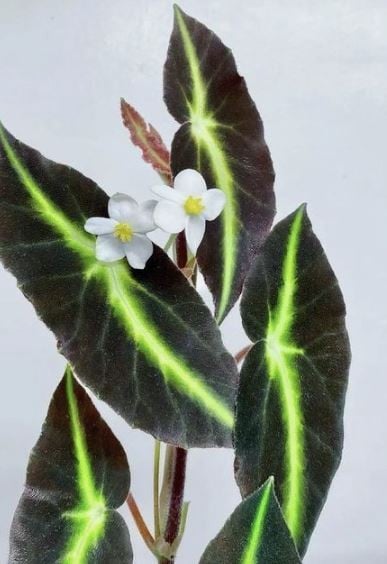 أوراقها بيضاوية تنتهي بنقطة، ذات ملمس ناعم ناتج عن شعرها الخفيف. لون أوراقها أخضر داكن مع وجود خط أخضر ليموني ملحوظ على طول عروقها. الجذع والجانب السفلي من العقيق الأحمر اللون. يمكن زراعته في الداخل والخارج، طالما أنه لا يعاني من الصقيع.